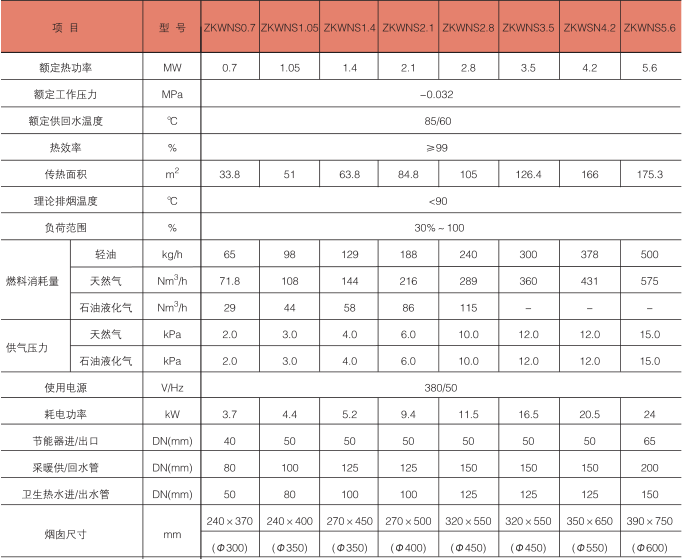 冷凝式真空热水锅炉技术参数: