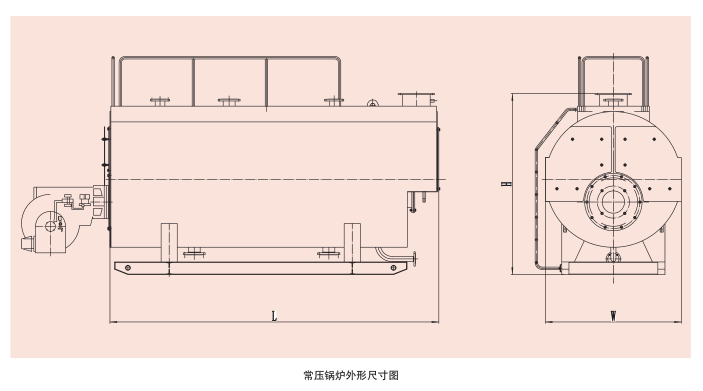 卧式常压热水锅炉外形尺寸图: